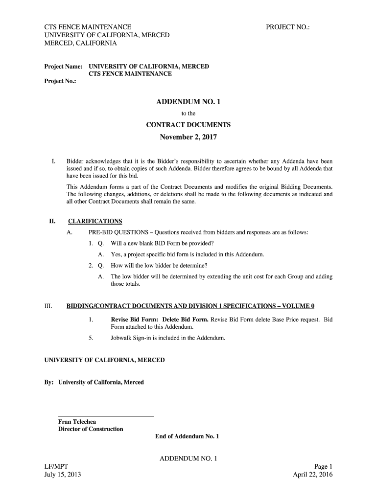 Get the free ADDENDUM NO. 1 June 26, 2017 - RFP & RFQ Listings - UC ... - rfp-rfq ucmerced