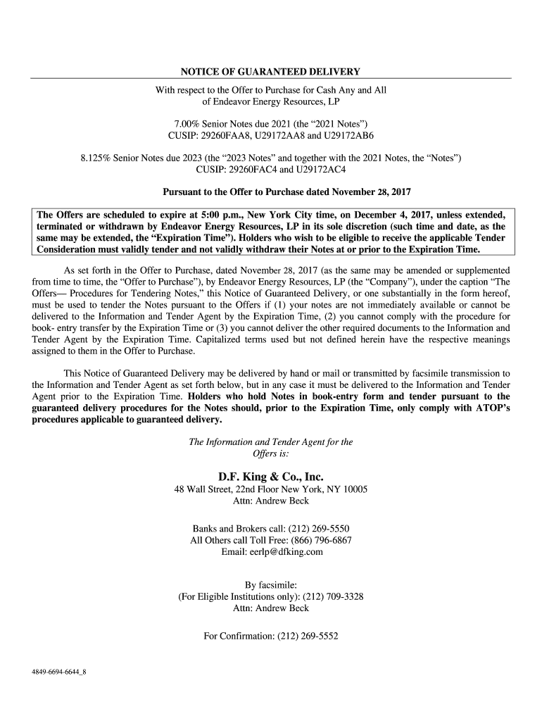 With respect to the Offer to Purchase for Cash Any and All Endeavor Energy Resources, LP
