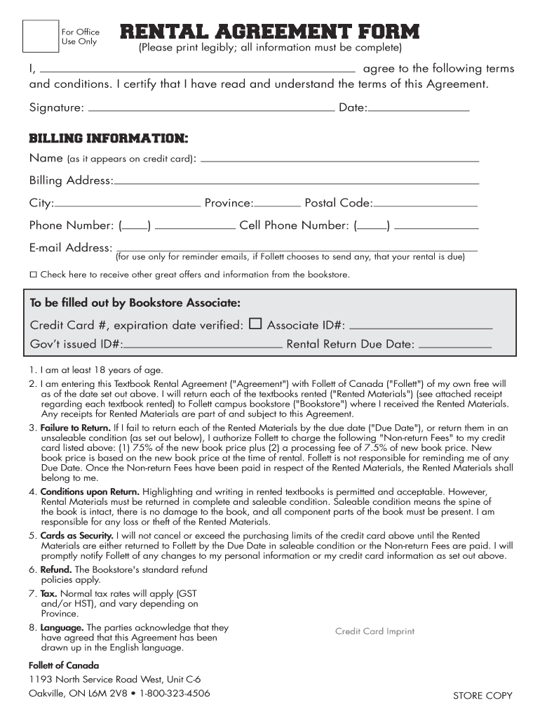 Get the free RENTAL AGREEMENT FORM - eFollett