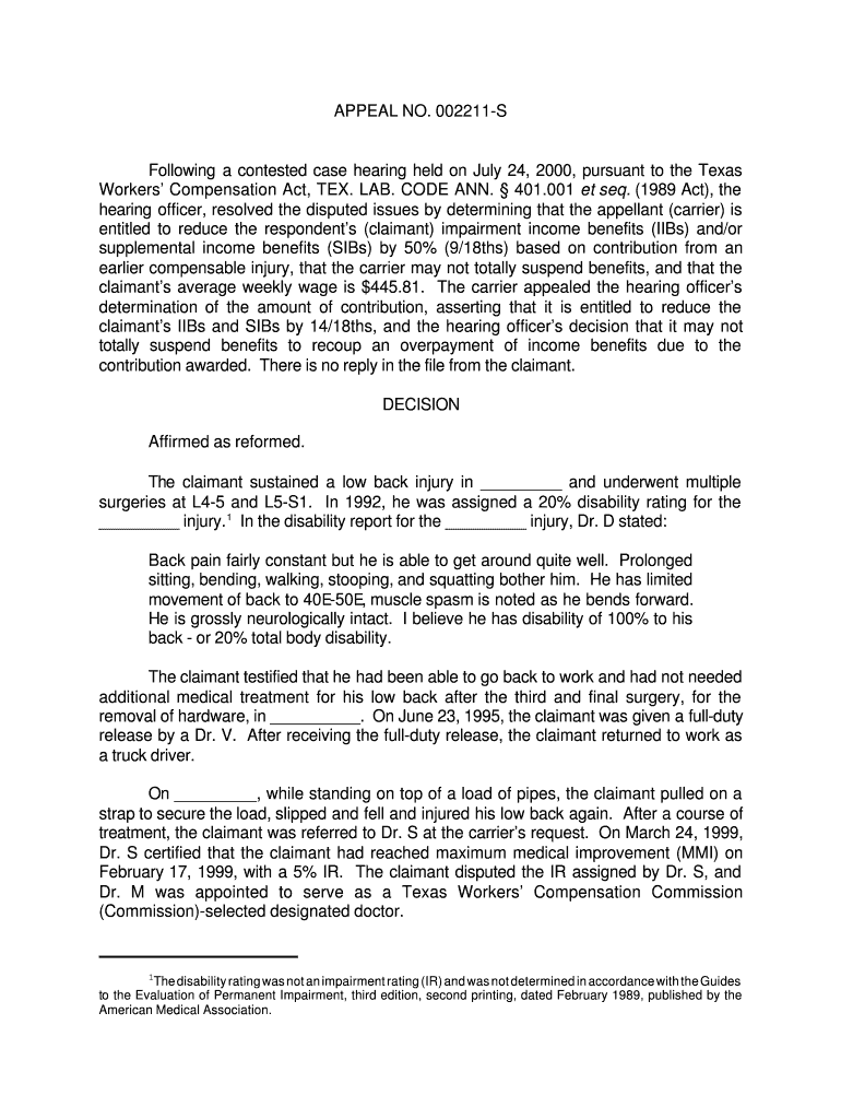 APPEAL NO. 002211SFollowing a contested case hearing held on July 24, 2000, pursuant to the Texas Workers Compensation Act, TEX. LAB. CODE ANN. 401.001 et seq. (1989 Act), the hearing officer, resolved