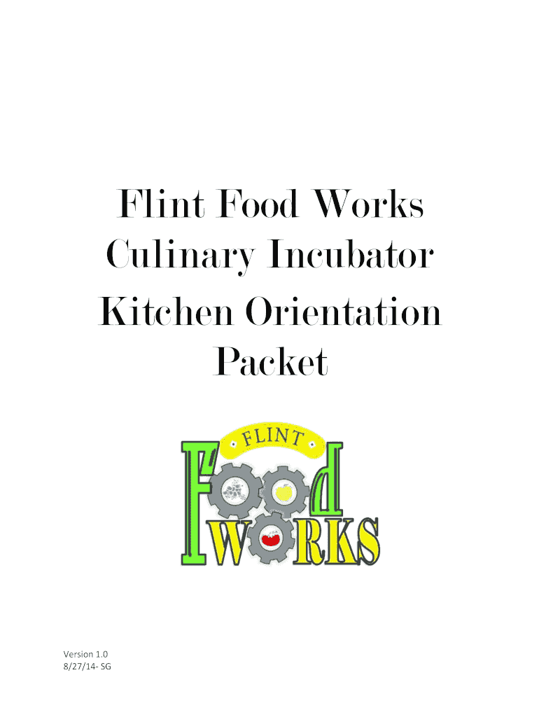 Flint Food Works Culinary Incubator Kitchen Orientation PacketVersion 1.0 8/27/14 Kitchen Users Licensing Orientation ChecklistApplication: Flint Food Works Culinary Incubator Intake Application Flint