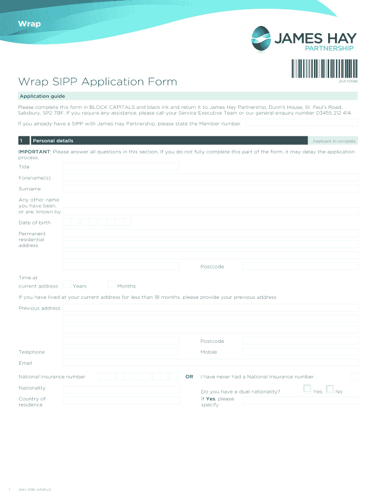Please complete this form in BLOCK CAPITALS and black ink and return it to James Hay Partnership, Dunn\'s House, St. Paul's Road,