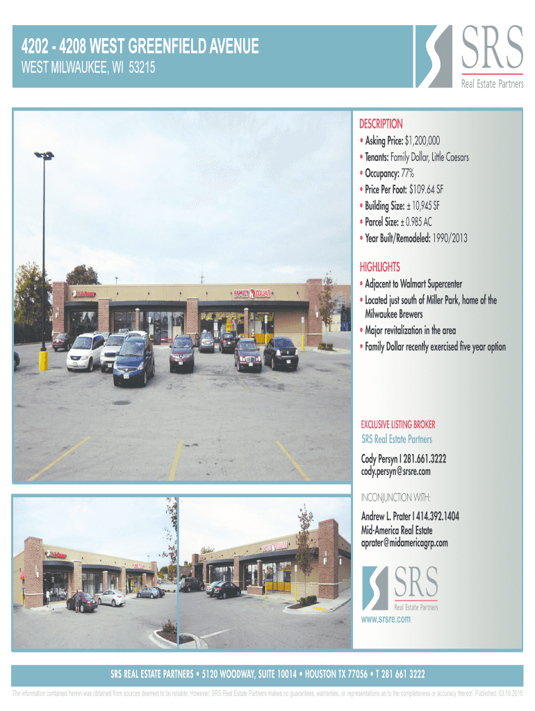 4202 4208 WEST GREENFIELD AVENUE WEST MILWAUKEE, WI 53215DESCRIPTION Asking Price: $1,200,000 Tenants: Family Dollar, Little Caesars Occupancy: 77% Price Per Foot: $109.64 SF Building Size: 10,945