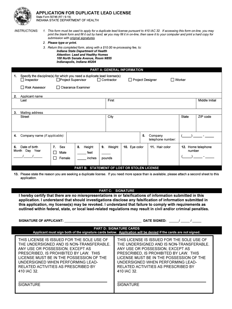 State Form 50746 (R7 / 919)INDIANA STATE DEPARTMENT OF HEALTH