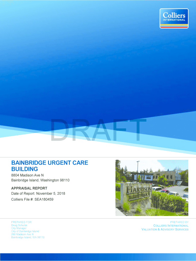 DRAFT BAINBRIDGE URGENT CARE BUILDING 8804 Madison Ave N Bainbridge Island, Washington 98110 APPRAISAL REPORT Date of Report: November 5, 2018, Colliers File #: SEA180459PREPARED FOR Doug Schulz City