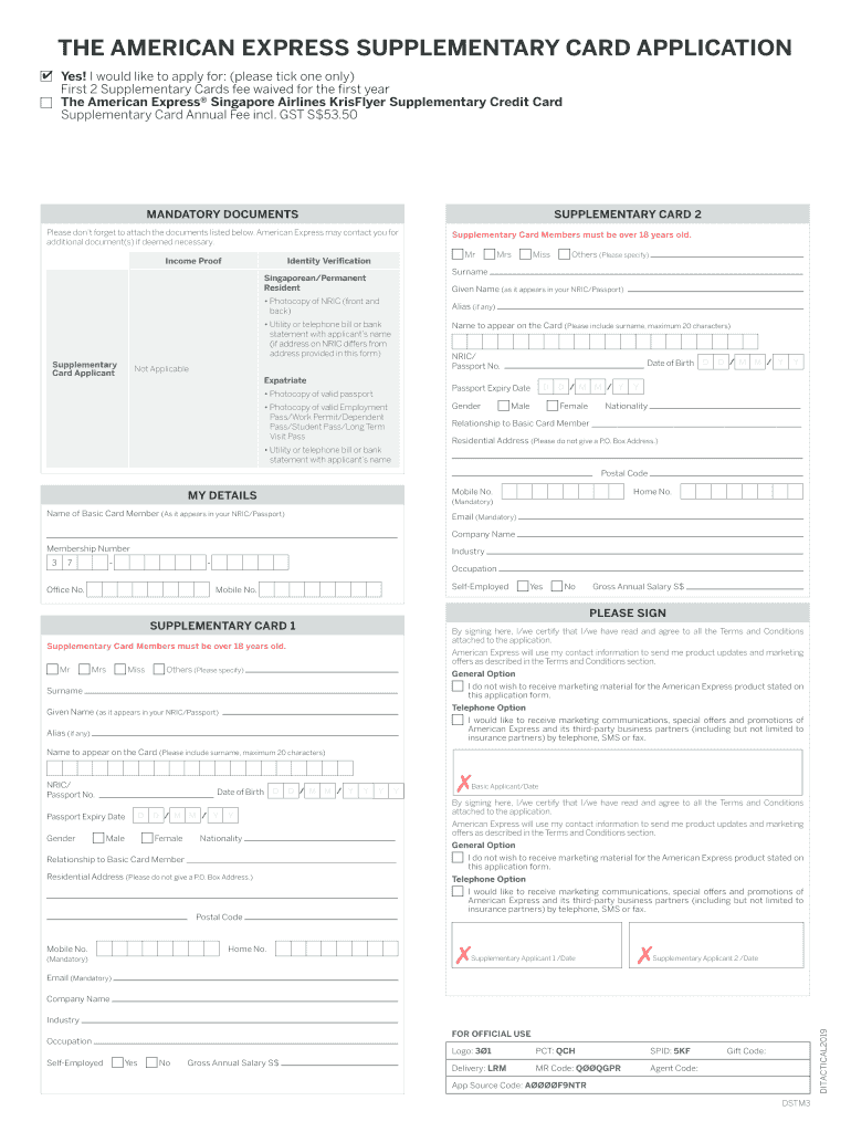 THE AMERICAN EXPRESS SUPPLEMENTARY CARD APPLICATION