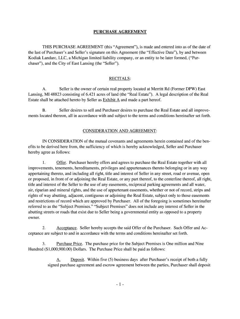 the last of Purchasers and Sellers signature on this Agreement (the Effective Date), by and