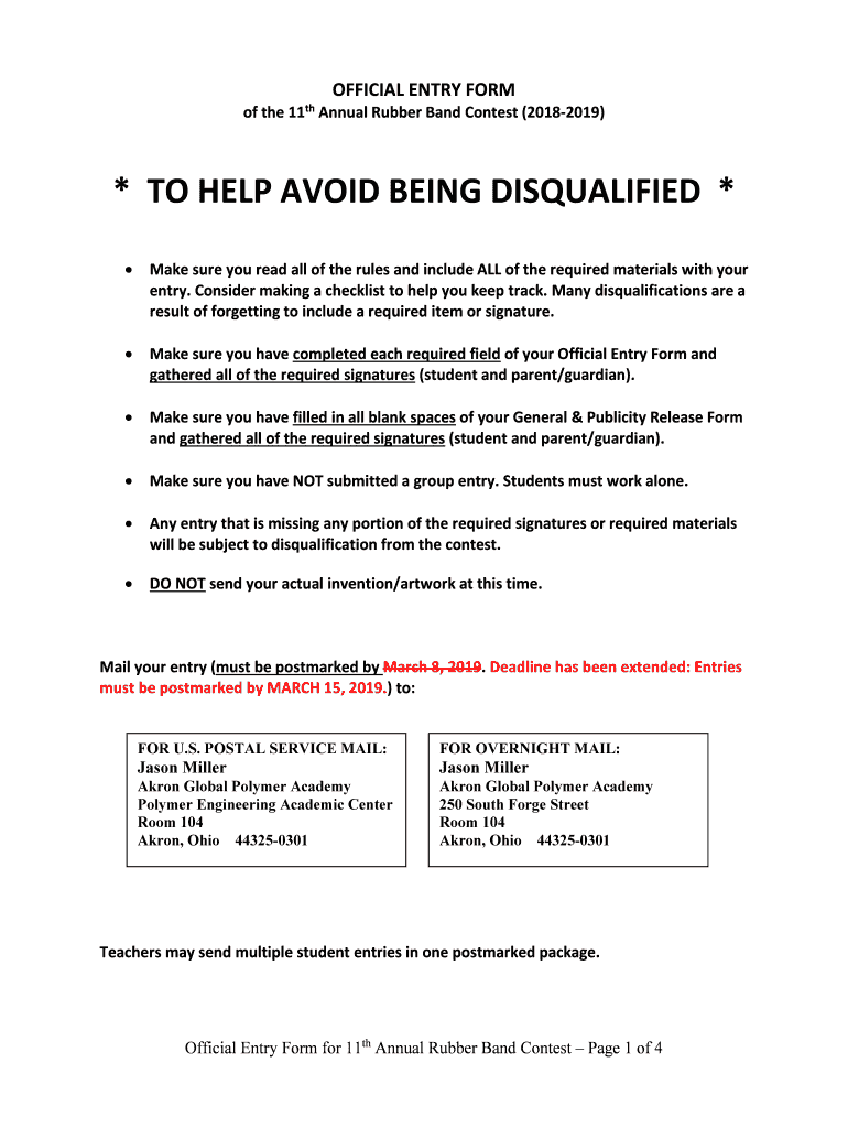 Of the11thOFFICIAL ENTRY Nonmanual Rubber Band Contest (20182019)* TO HELP AVOID BEING DISQUALIFIED *