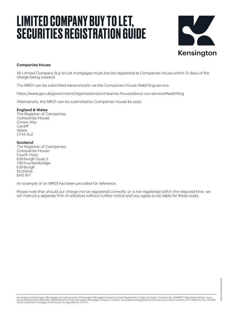 LIMITED COMPANY BUY TO LET; SECURITIES REGISTRATION GUIDE Companies House All Limited Company Buy to Let mortgages must also be registered at Companies House within 21 days of the charge being created.