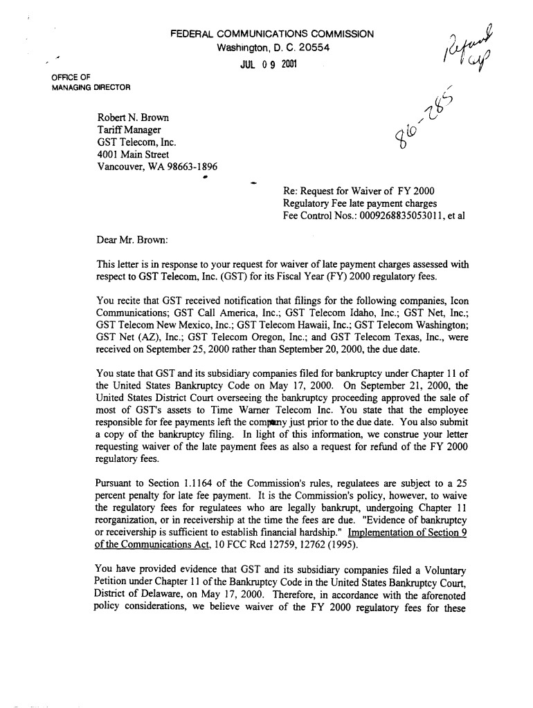 Washington, D. C. 20554JUL 09 2001