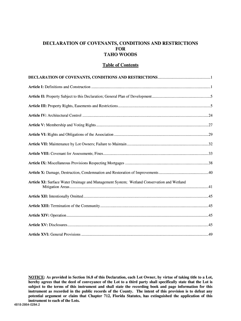 DECLARATION OF COVENANTS, CONDITIONS AND RESTRICTIONS .....................................................1