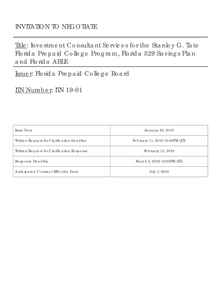 Get the free INVITATION TO NEGOTIATE Title: Investment Consultant Services ...