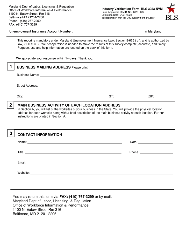 Maryland Dept of Labor, Licensing, & Regulation Office of Workforce Information & Performance 1100 N. Utah Street, Rm 316 Baltimore MD 212012206 Phone: (410) 7672259 FAX: (410) 7673299 Unemployment