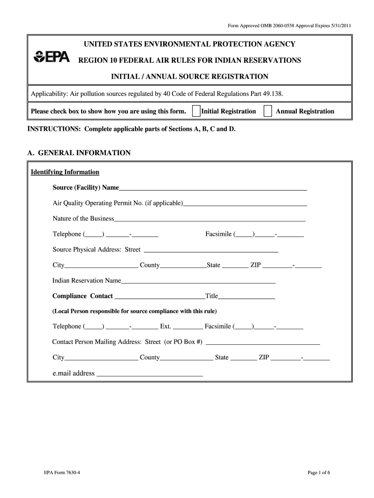 Form Approved OMB 20600558 Approval Expires 5/31/2011UNITED STATES ENVIRONMENTAL PROTECTION AGENCY
