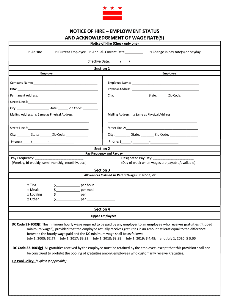 Get the free notice of hireemployment status and acknowledgement of ... - opgs dc