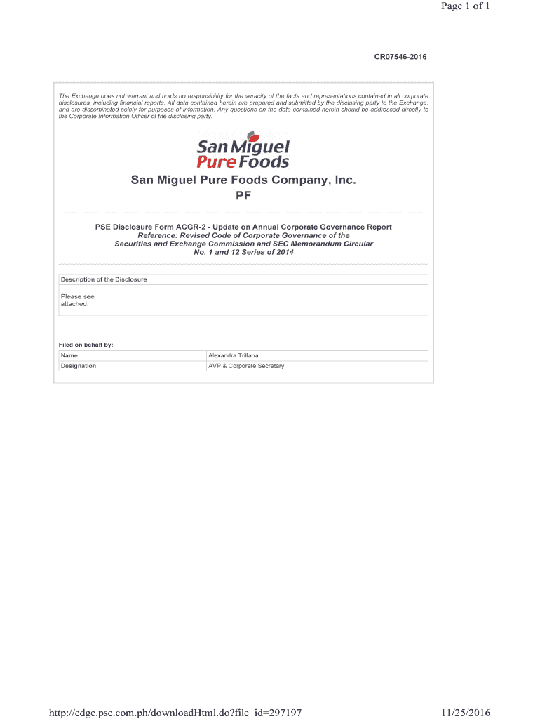 Page 1 of 1CR075462016The Exchange does not warrant and holds no responsibility for the veracity of the facts and representations contained in all corporate