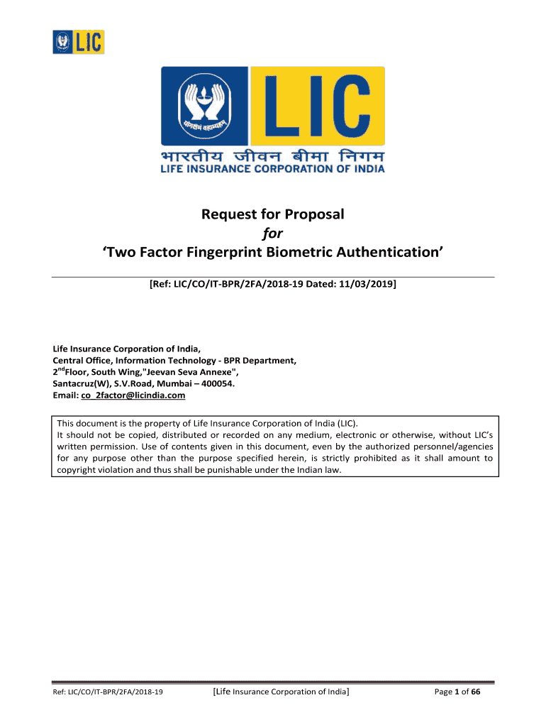 Get the free Request for Proposal for 'Two Factor Fingerprint ... - LIC of India