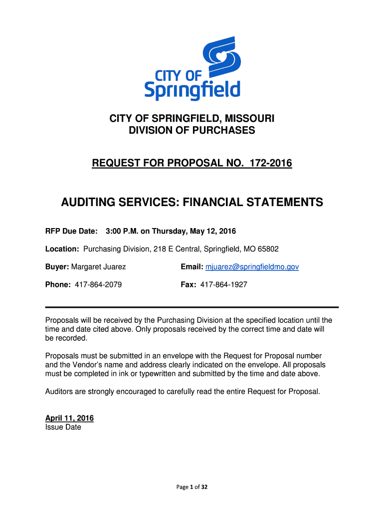 Get the free auditing services: financial statements - City of Springfield, MO