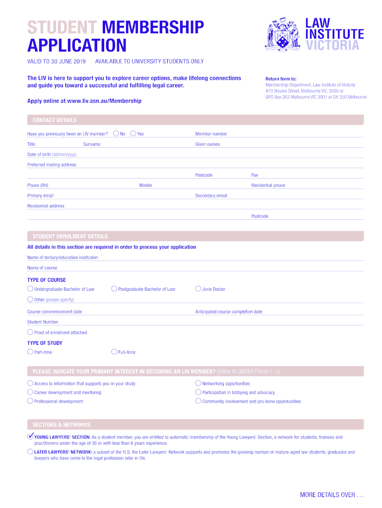 Get the free STUDENT MEMBERSHIP APPLICATION - liv.asn.au