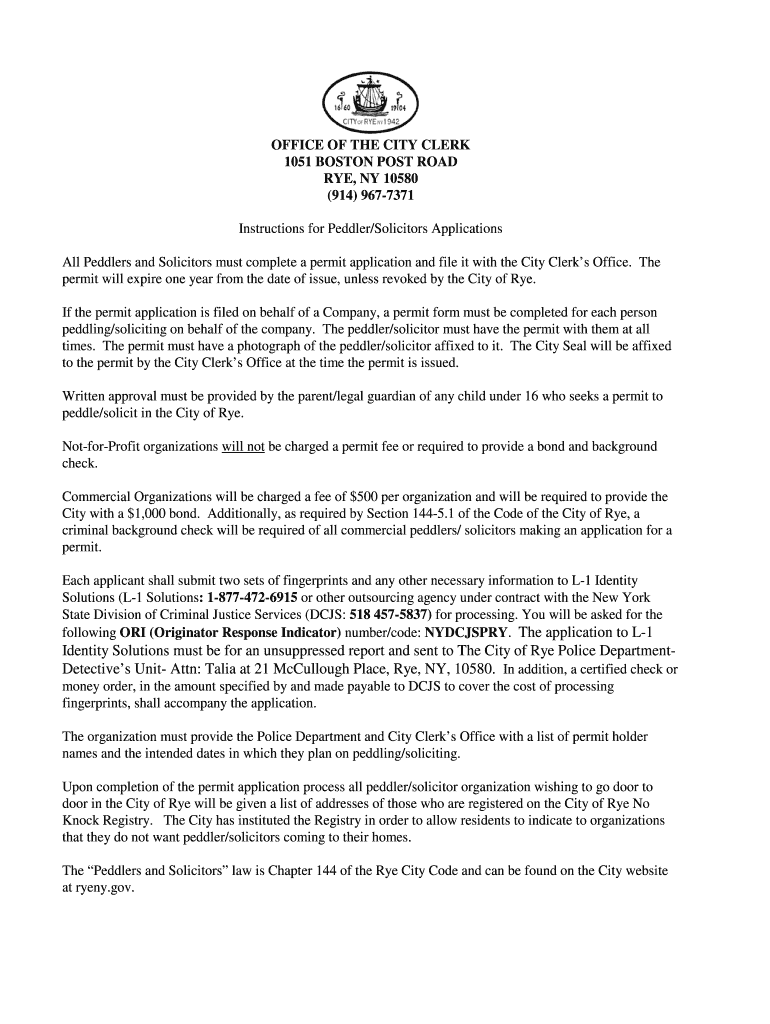 Get the free Peddlers/ Solicitors Permit Application - Rye, NY