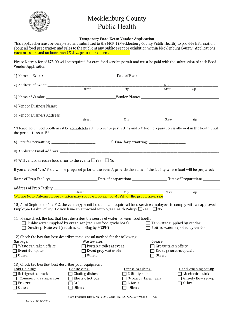 This application must be completed and submitted to the MPH (Mecklenburg County Public Health) to provide information