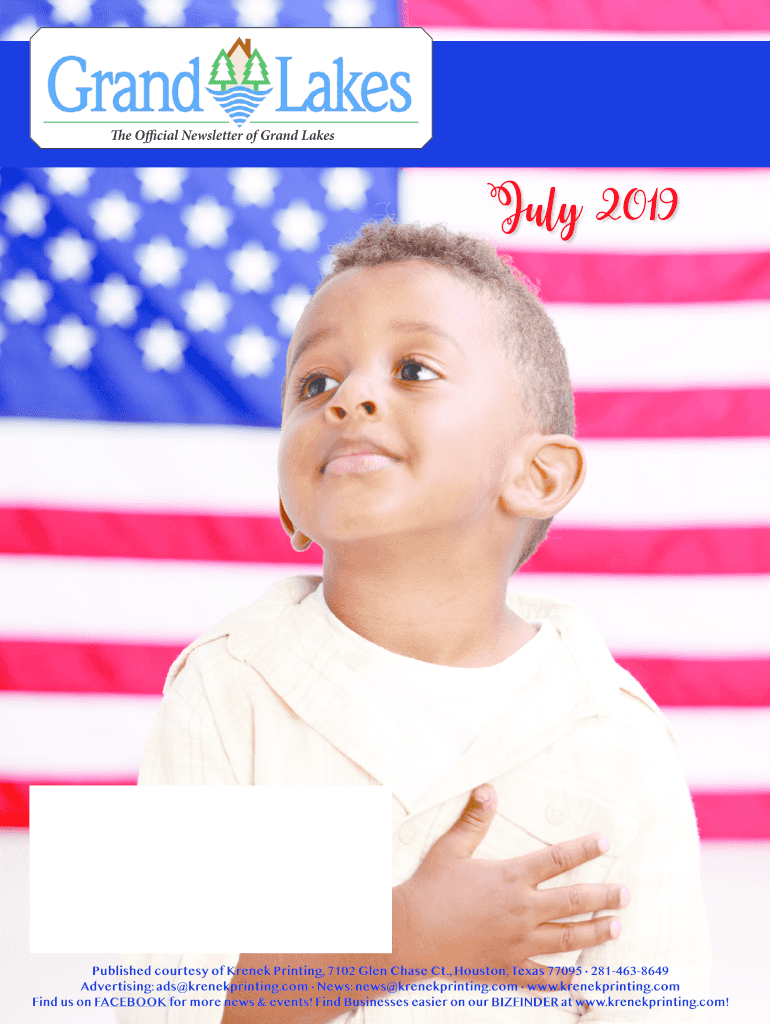The Official Newsletter of Grand Lakes July 2019Published courtesy of Greek Printing, 7102 Glen Chase Ct., Houston, Texas 77095 2814638649 Advertising: ads krenekprinting.com News: news krenekprinting.com
