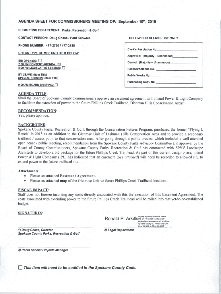 AGENDA SHEET FOR COMMISSIONERS MEETING OF: September 10th, 2019 SUBMITTING DEPARTMENT: Parks, Recreation & Golf CONTACT PERSON: Doug Chase I Paul KnowlesBELOW FOR CLERKS USE ONLY:PHONE NUMBER: 477272014772188