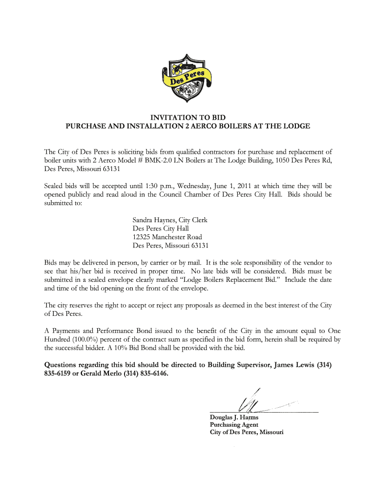 The City of DES Pairs is soliciting bids from qualified contractors for purchase and replacement of