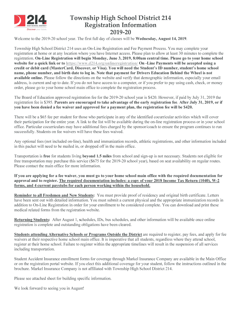 Welcome to the 201920 school year. The first full day of classes will be Wednesday, August 14, 2019.