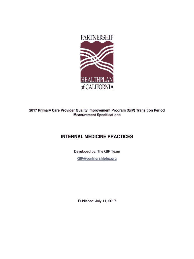2017 Primary Care Provider Quality Improvement Program (HIP) Transition Period