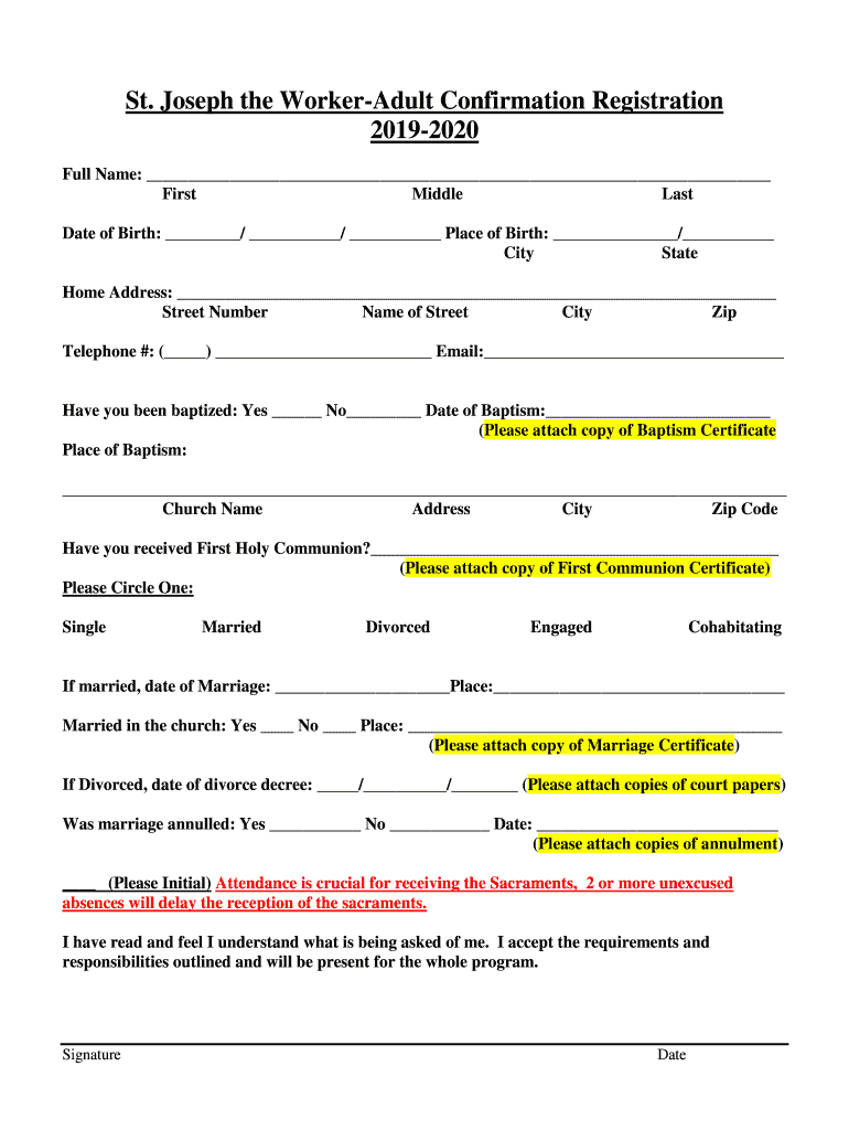 Get the free Joseph the Worker-Adult Confirmation Registration