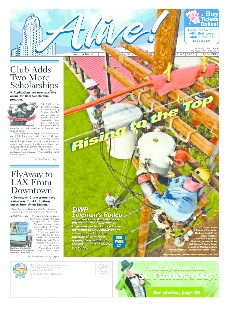 Tickets Online! Easy, fast and with that great Club discount. See page 50. Vol. 5nSERVING OVER 17,000 CITY AND DSP EMPLOYEESCity Employees Club of Los Angeles No. 4April 2006Club Adds Two More Scholarships