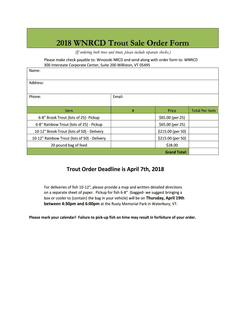 2018 WORD Trout Sale Order Form (If ordering both trees and trout, please include separate checks.) Please make check payable to: Sinews NRC and send along with order form to: WORD 300 Interstate
