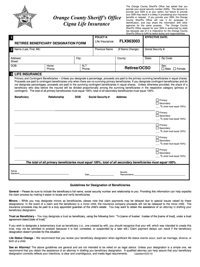 Get the free Orange County Sheriff's Office Cigna Life Insurance