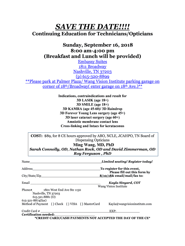 Get the free SAVE THE DATE!!!! - wangvisioninstitute.com