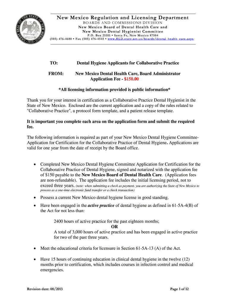 Get the free New M ex i c o D ent al H y g i en ist C o mm it te e