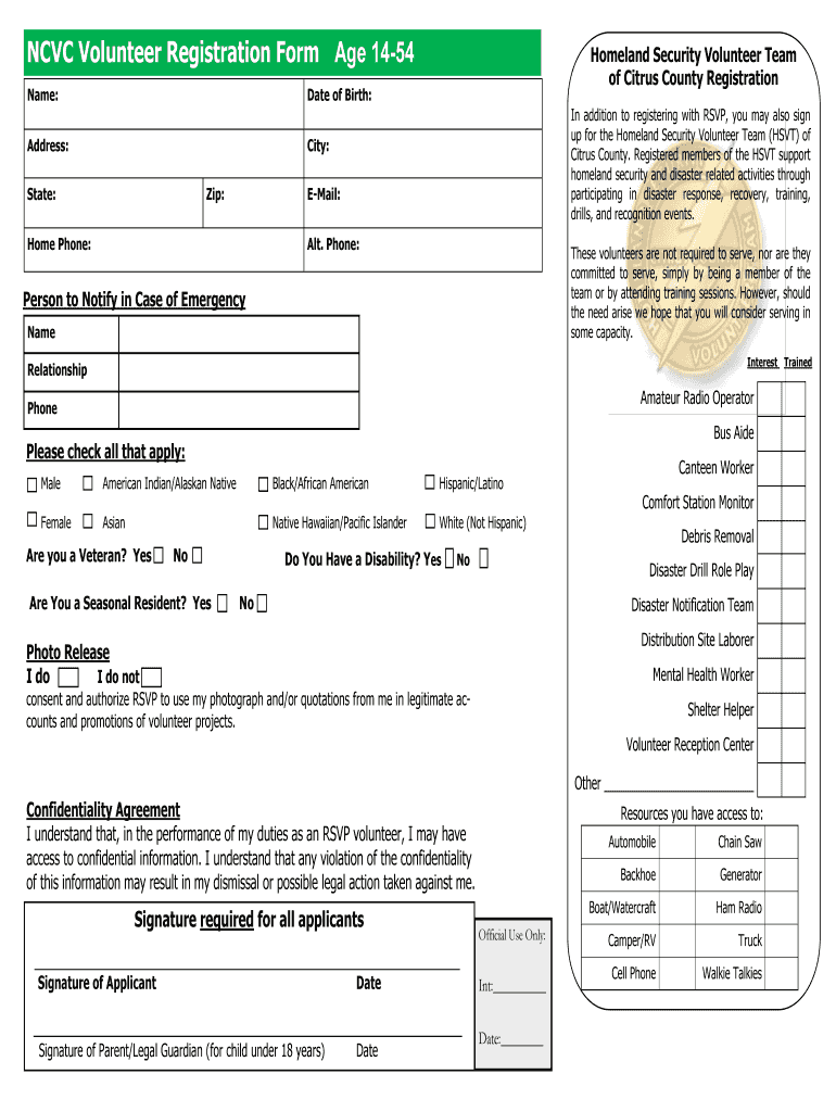 Get the free NCVC Volunteer Registration Form Age 14 54 Homeland ...