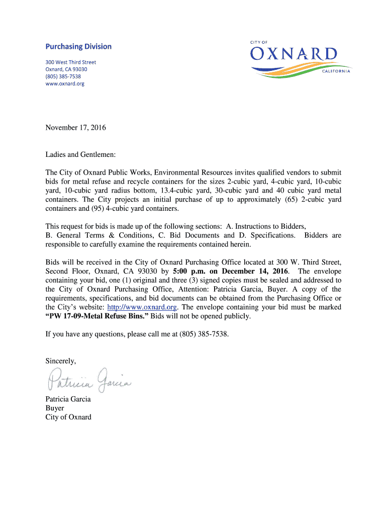 www.oxnard.orgNovember 17, 2016Ladies and Gentlemen: