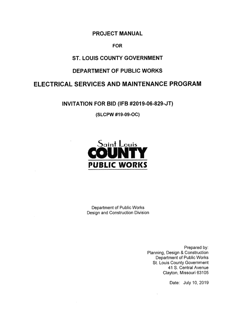 NOTICE TO BIDDERS St. Louis County is soliciting sealed electronic bids for work as defined below. INVITATION FOR BID IF #201906829JT ELECTRICAL SERVICE AND MAINTENANCE DEPARTMENT OF PUBLIC WORKS