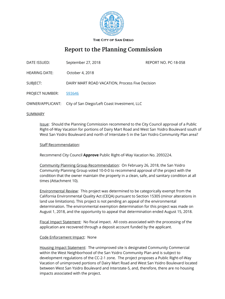 DATE ISSUED:September 27, 2018REPORT NO. PC18058HEARING DATE:October 4, 2018SUBJECT:DAIRY MART ROAD VACATION, Process Five DecisionPROJECT NUMBER:593646OWNER/APPLICANT:City of San Diego/Left Coast