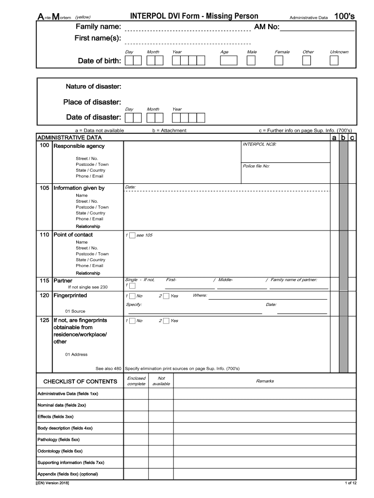 Understanding each field on the INTERPOL DVI Form is crucial for accurate completion. Key fields include: