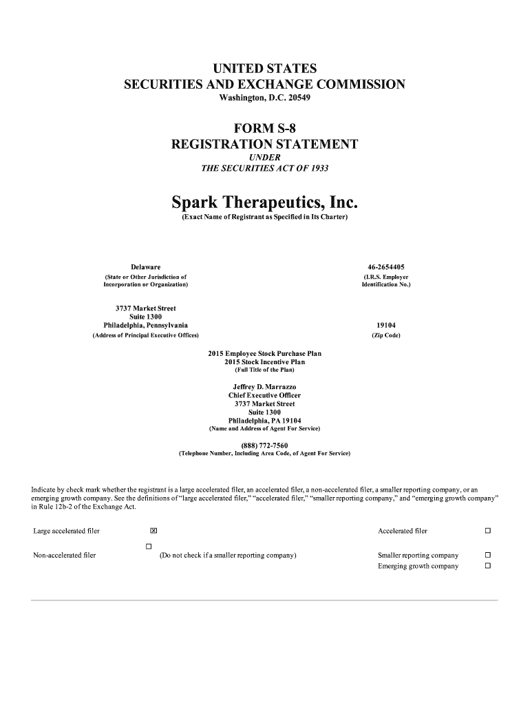 THE SECURITIES ACT OF 1933Spark Therapeutics, Inc.