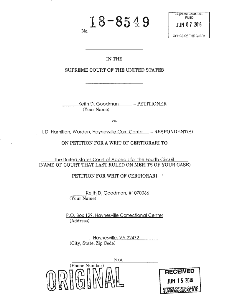 SUPREME COURT OF THE UNITED STATES Keith D. Goodman