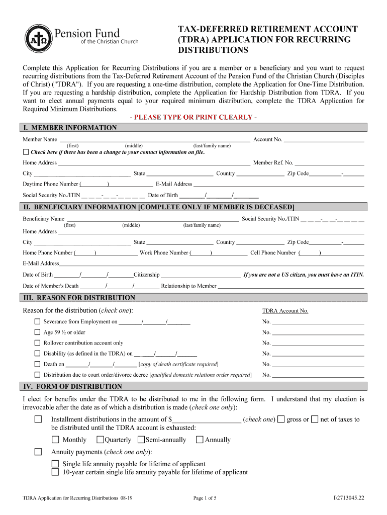 DEFERRED RETIREMENT ACCOUNT (TARA) APPLICATION FOR RECURRING DISTRIBUTIONS Complete this Application for Recurring Distributions if you are a member or a beneficiary, and you want to request recurring