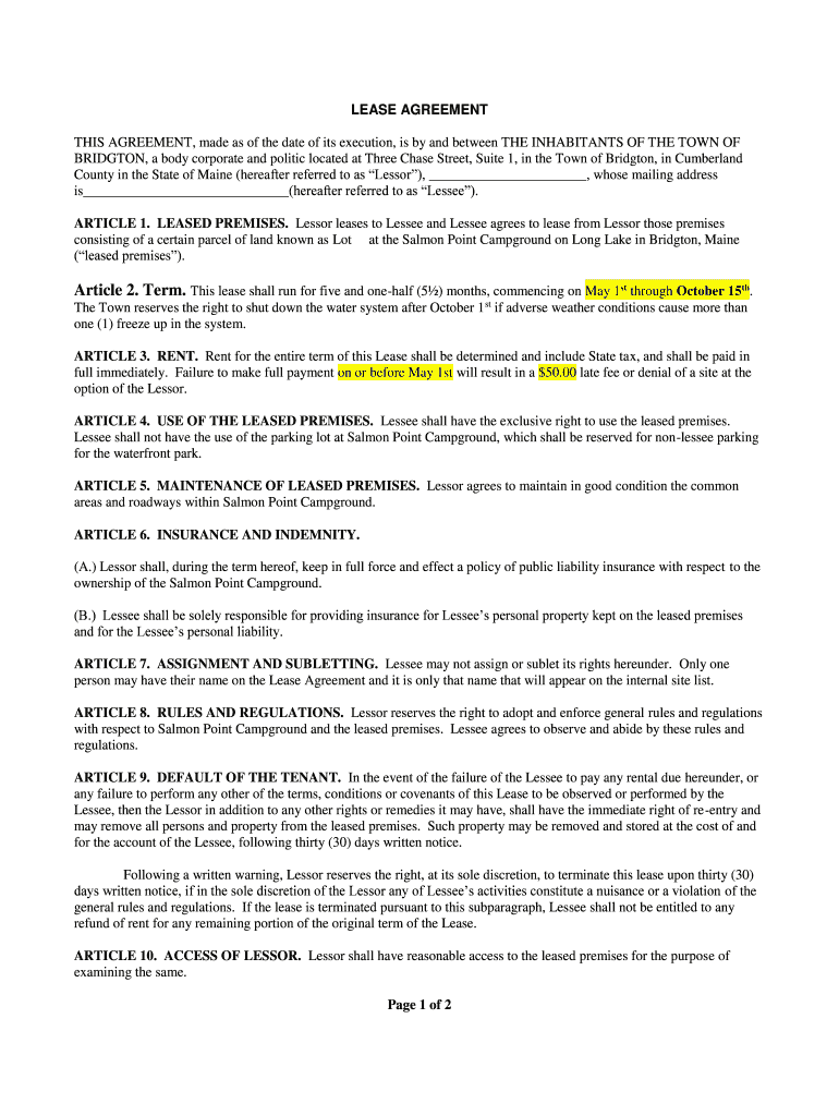 Get the free Salmon Point Lease Agreement (sample) - Town of Bridgton ...