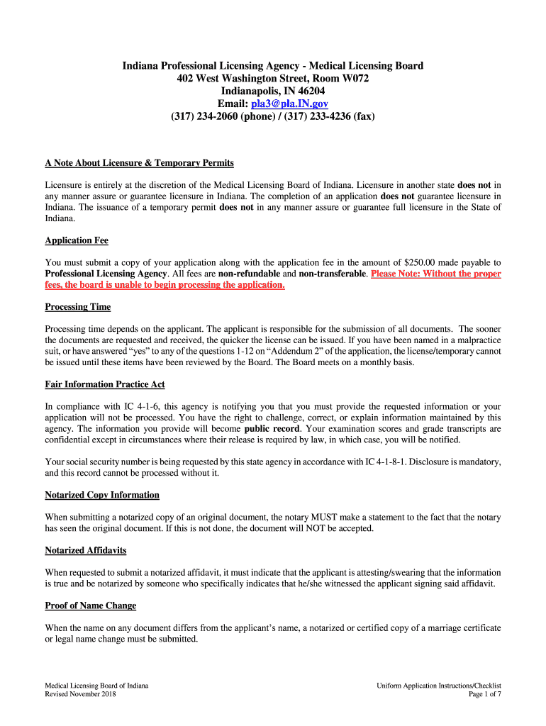 Indiana Professional Licensing Agency Medical Licensing Board 402 West Washington Street, Room W072 Indianapolis, IN 46204 Email: pla3 PLA.IN.gov (317) 2342060 (phone) / (317) 2334236 (fax)A Note