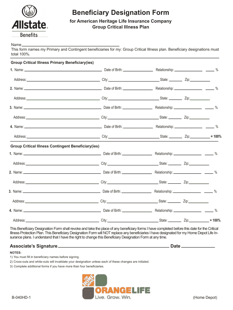 Get the free Beneficiary Designation Form with Work ... - Allstate Benefits
