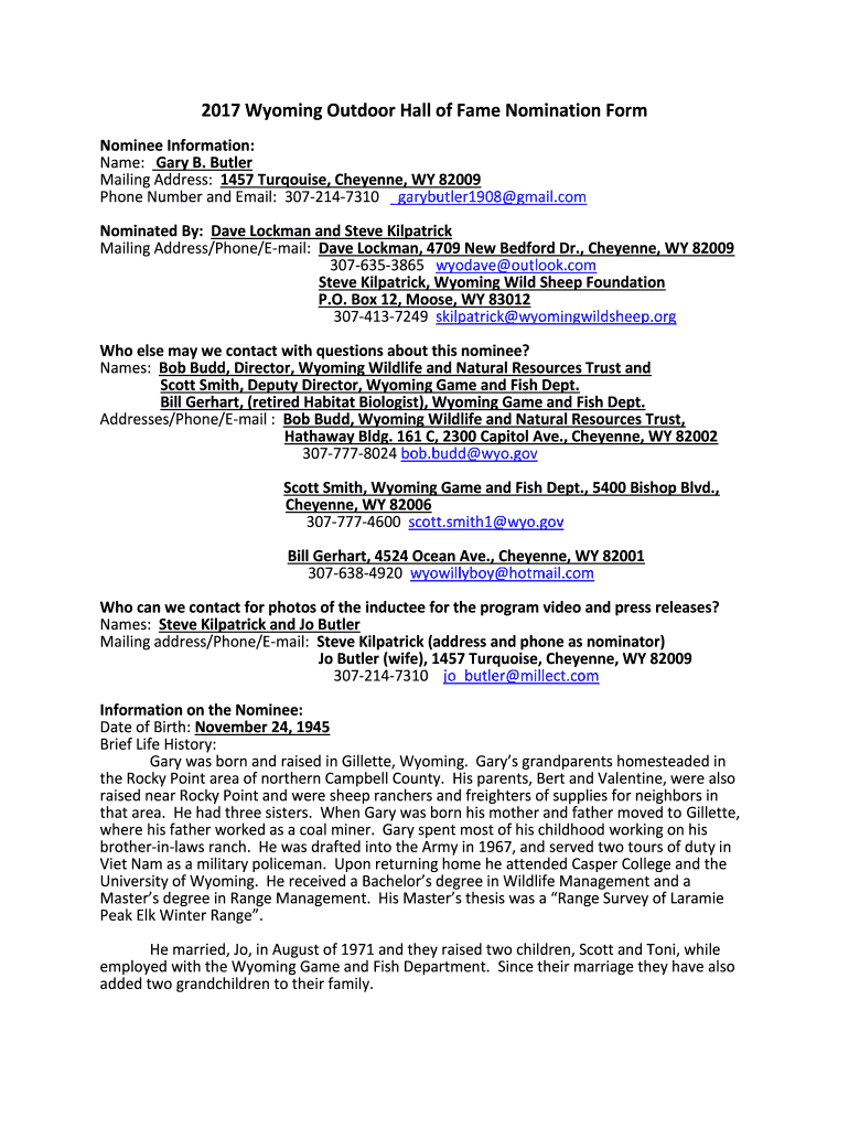 2017 Wyoming Outdoor Hall of Fame Nomination Form