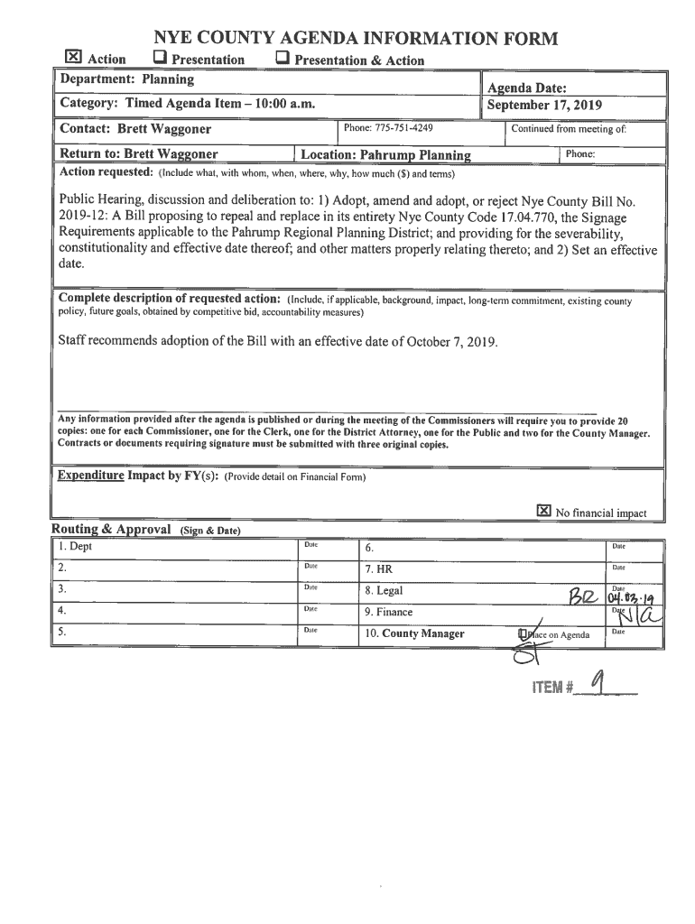 Get the free NYE COUNTY AGENDA INFORMATION FORM 0 iTEM