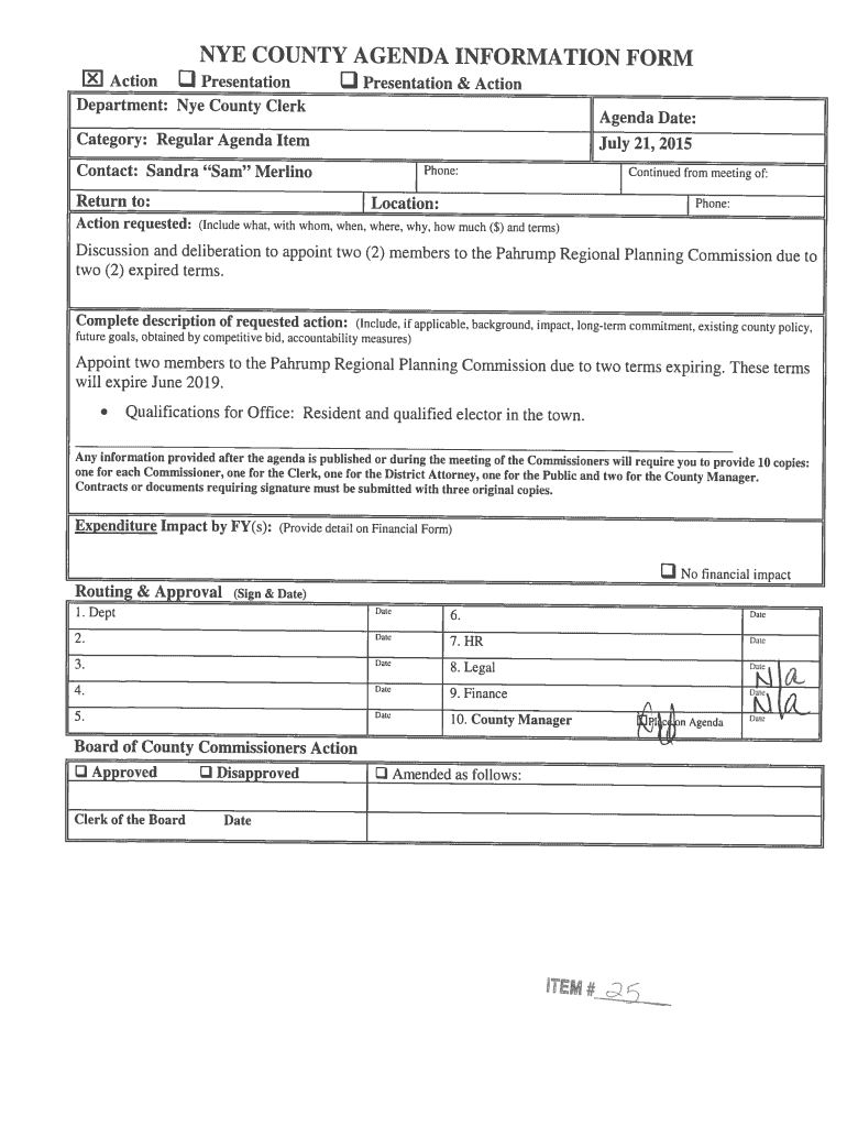 How to fill out nye county clerk agenda